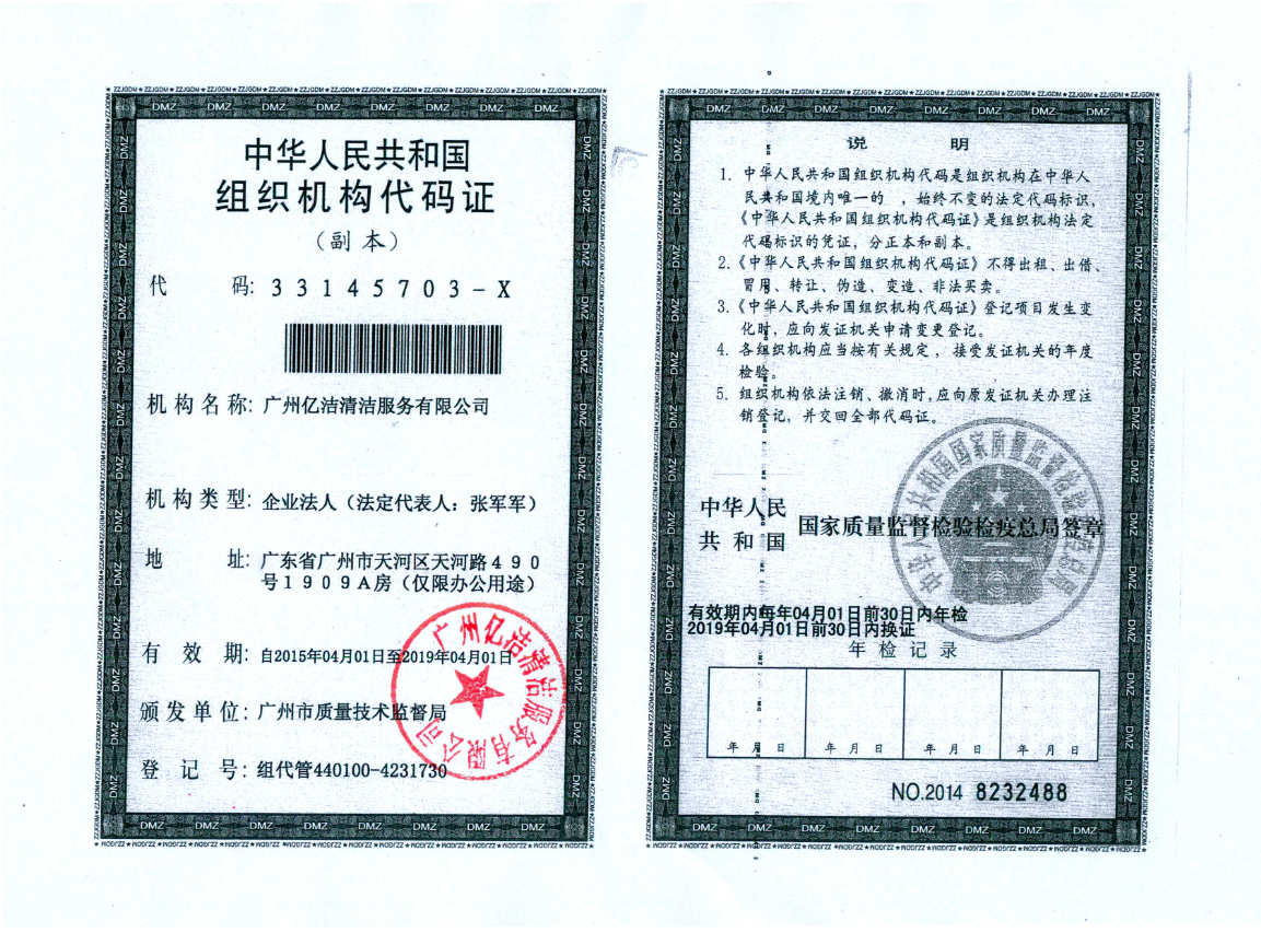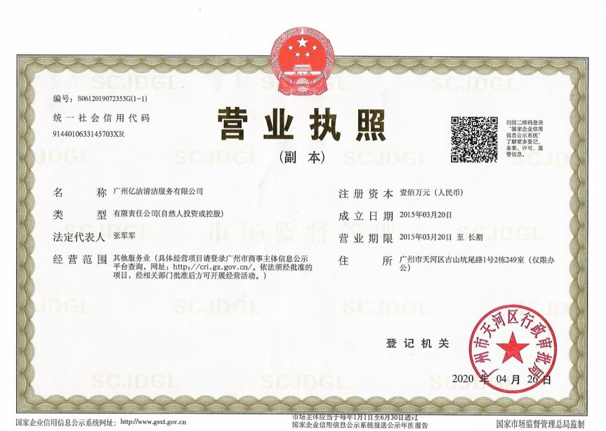 廣州億潔清潔服務(wù)有限公司是經(jīng)廣州市工商行政管理局批準(zhǔn)成立的(注冊(cè)資本:100萬(wàn)元人民幣)。具有獨(dú)立法人資質(zhì)。公司成立2015年,公司具備完善的管理體系和高素質(zhì)管理隊(duì)伍,擁有特種技術(shù)人員33名,保潔服務(wù)人員上萬(wàn)名,覆蓋廣州市,能及時(shí)調(diào)配并快速投入高效運(yùn)行。我們的每個(gè)員工都經(jīng)過(guò)公司的嚴(yán)格篩選,嚴(yán)格培訓(xùn),定期培訓(xùn)后持證上崗以保證服務(wù)品質(zhì),保障客戶的權(quán)利,利益,形象等不受損失。 廣州億潔清潔公司是一家設(shè)備齊全,技術(shù)強(qiáng)大的綜合型清潔服務(wù)公司,為客戶提供完善服務(wù)尊定了堅(jiān)定的基礎(chǔ)。 司于2010年全面推行了ISO9001質(zhì)量管理體系認(rèn)證和ISO14001國(guó)際環(huán)保體系認(rèn)證。先后獲得廣州高層建筑外墻清洗維修作業(yè)【安全資質(zhì)證書(shū)】、【廣州環(huán)衛(wèi)企業(yè)等級(jí)證書(shū)C級(jí)資質(zhì)】、廣州疾控中心頒發(fā)的【四害消殺服務(wù)資質(zhì)證】、【空氣治理A級(jí)資質(zhì)】、中國(guó)石材協(xié)會(huì)頒發(fā)的【石材資質(zhì)B級(jí)資質(zhì)】等。 廣州億潔清潔服務(wù)有限公司致力于打造專業(yè)、實(shí)惠、靠譜的保潔服務(wù)公司,把專業(yè)的事情交給專業(yè)的我們,您放心! 億潔清潔服務(wù)項(xiàng)目: 廣州保潔服務(wù):新建樓宇、別墅、酒店、醫(yī)院、辦公樓、賓館、企事業(yè)單位廠房竣工后開(kāi)荒及裝修后精細(xì)保潔.工程保潔服務(wù)。 廣州物業(yè)托管:為廣州市各大企事業(yè)單位、賓館、政府機(jī)關(guān)、小區(qū)物業(yè)、酒店及廠房提供專業(yè)化保潔、園林、設(shè)施維護(hù)等管理服務(wù)。 廣州高空作業(yè):高空玻璃幕...[詳情]